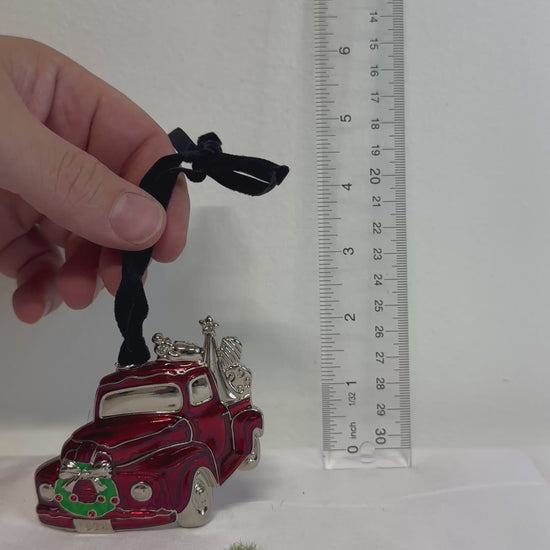 As the truck drives through a snowy landscape, it symbolizes the joy and cheer of the holidays. Hang this delightful ornament on your tree or give as a special gift. This classic car ornament will make any tree and home in time for Christmas with no break downs. Spread holiday spirit and create a cozy atmosphere for family, friends and welcome them home.